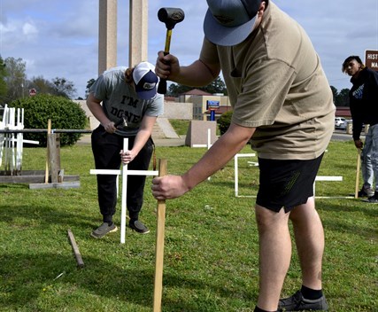 West Rusk High’s Future Farmers of America set up crosses on Memorial Drive Thursday to honor the 293 ...